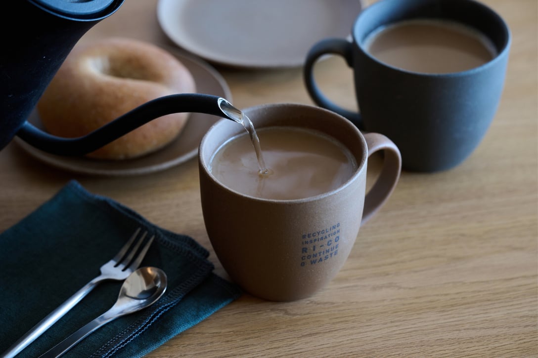 目覚めの一杯を彩るGOOD MORNINGマグカップ。自然素材の手触りと、素材の効果で、後口すっきり、やさしい朝のひとときを演出します。シンプルなデザインで食洗機、電子レンジにも対応。もちろん、RI-COオリジナルの再生備前素材で環境や文化にも配慮。特別な朝のコーヒータイムをひとときを提供します。